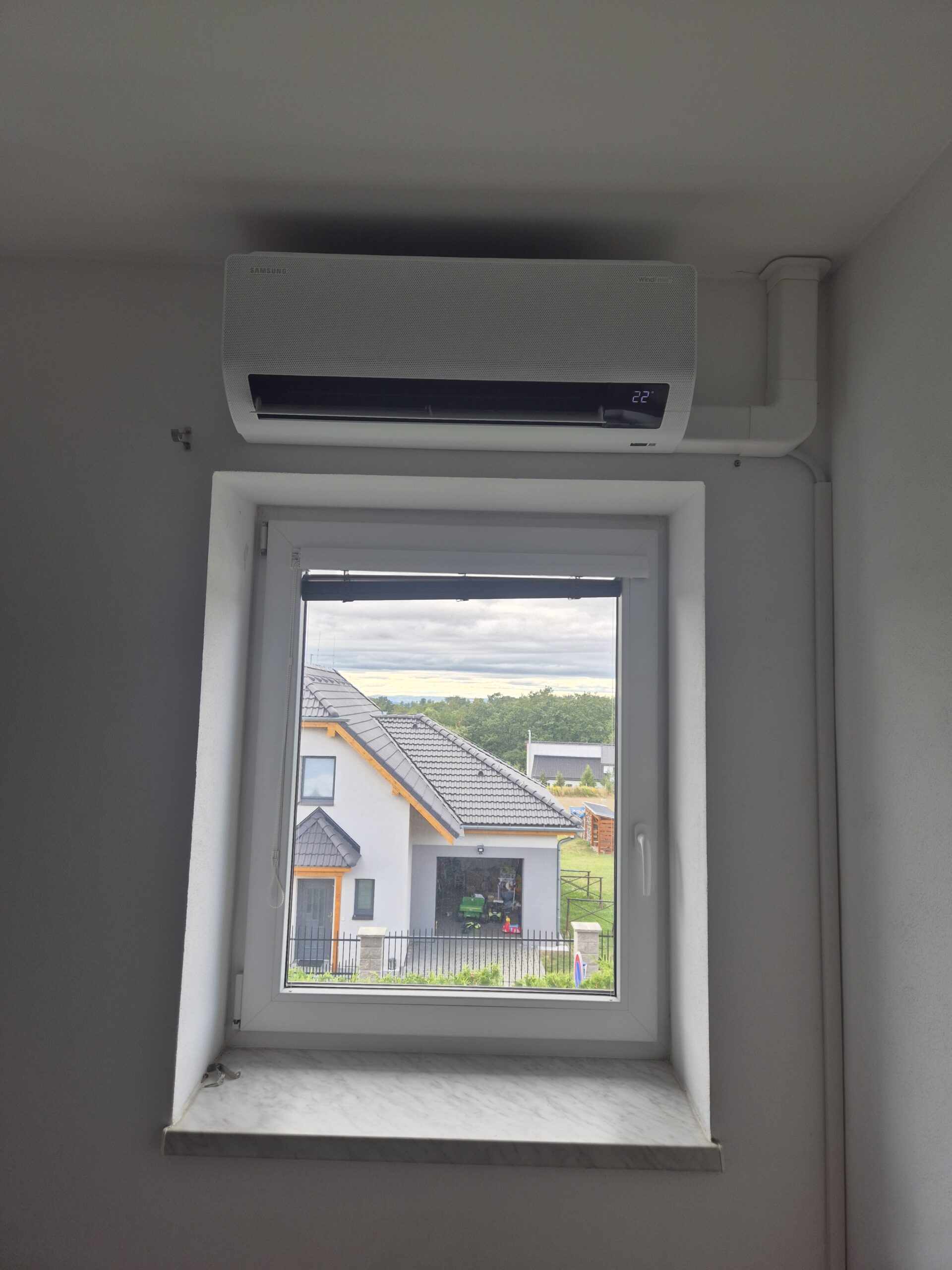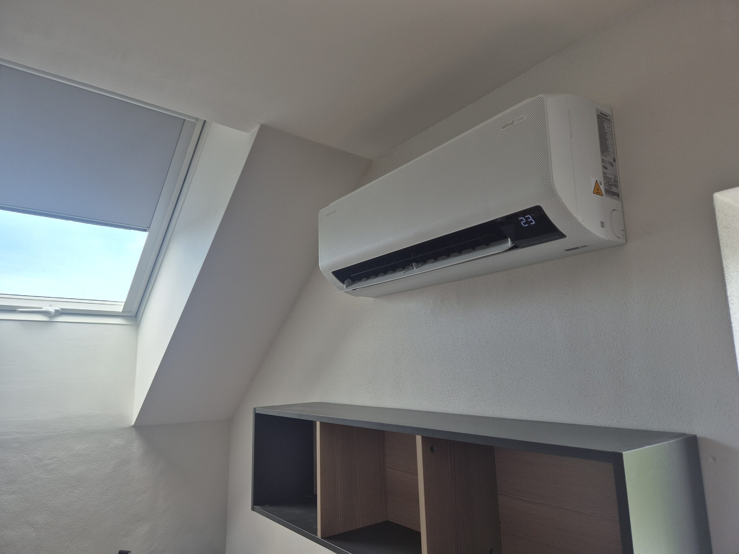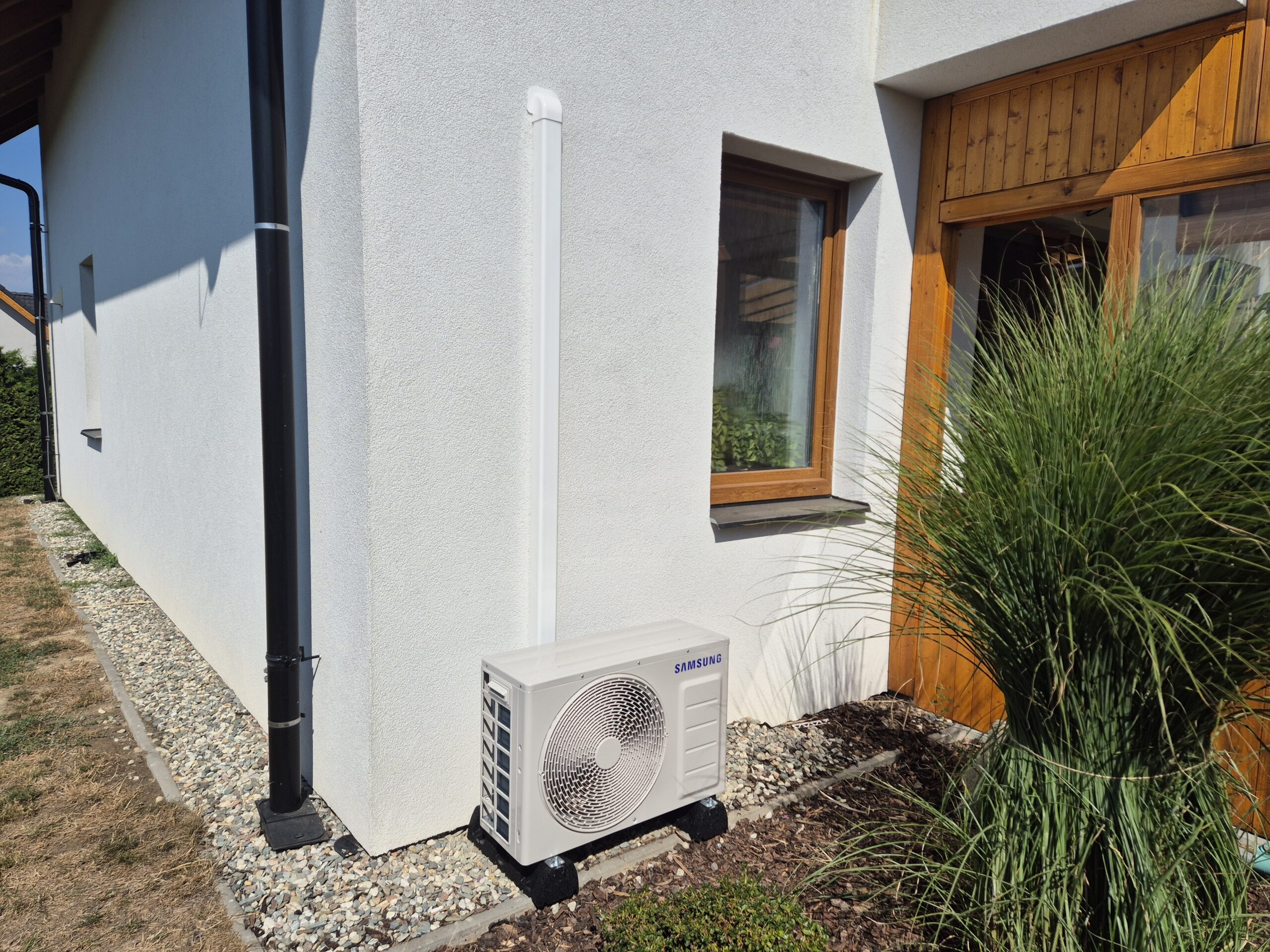 Kombinace dvou klimatizačních systémů Samsung – samostatná Split klimatizace Avant byla instalována v obývacím pokoji. Druhý systém byl řešen jako MultiSplit, kdy jedna venkovní jednotka umístěná na balkoně a dvě vnitřní jednotky v dětském pokoji a v ložnici. Rozvody z ložnice byly vedeny na půdě, odkud pokračují k venkovní jednotce. Toto řešení umožnilo skrýt potrubní trasy, minimalizovat zásahy do interiéru Veškeré vedení bylo pečlivě provedeno s důrazem na funkčnost, estetiku i budoucí servisní přístup. Venkovní jednotky byly umístěny tak, aby nerušily provozem ani hlučností a zároveň měly zajištěné optimální podmínky pro správnou funkci.