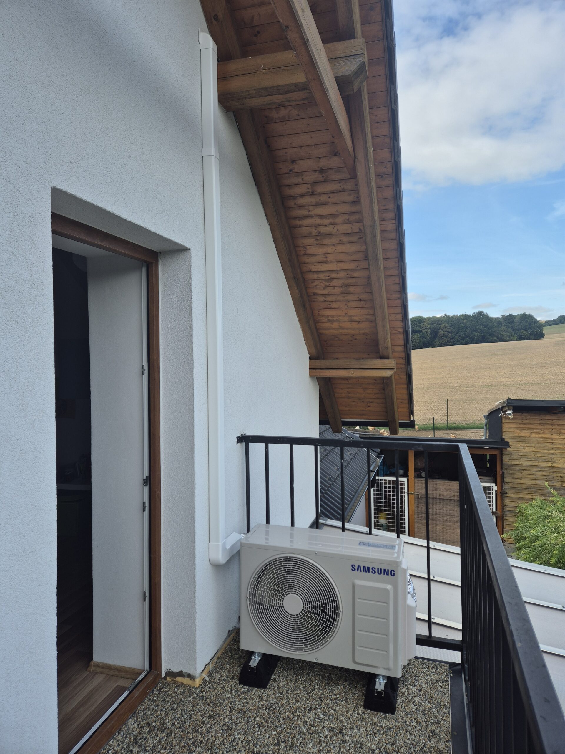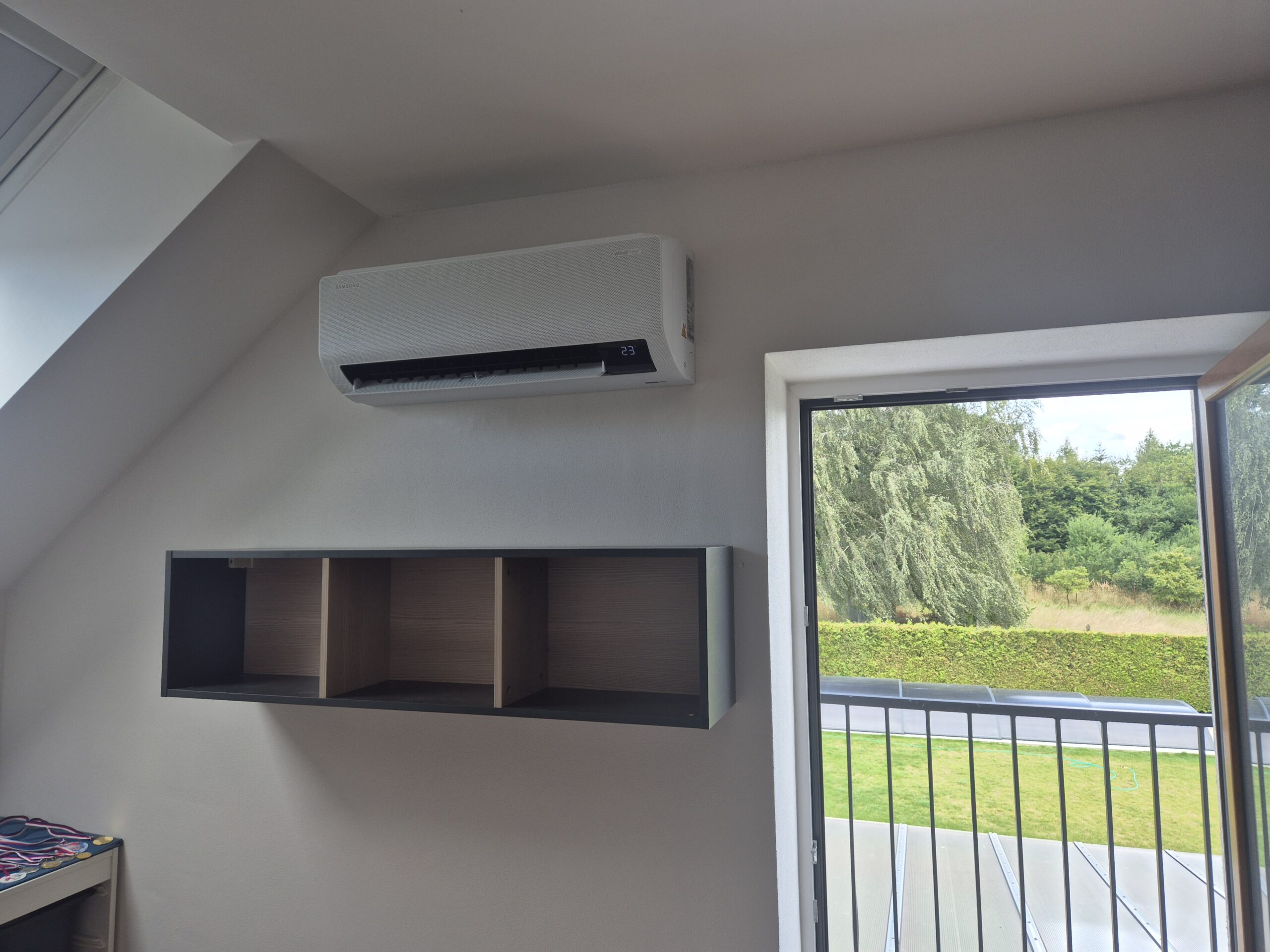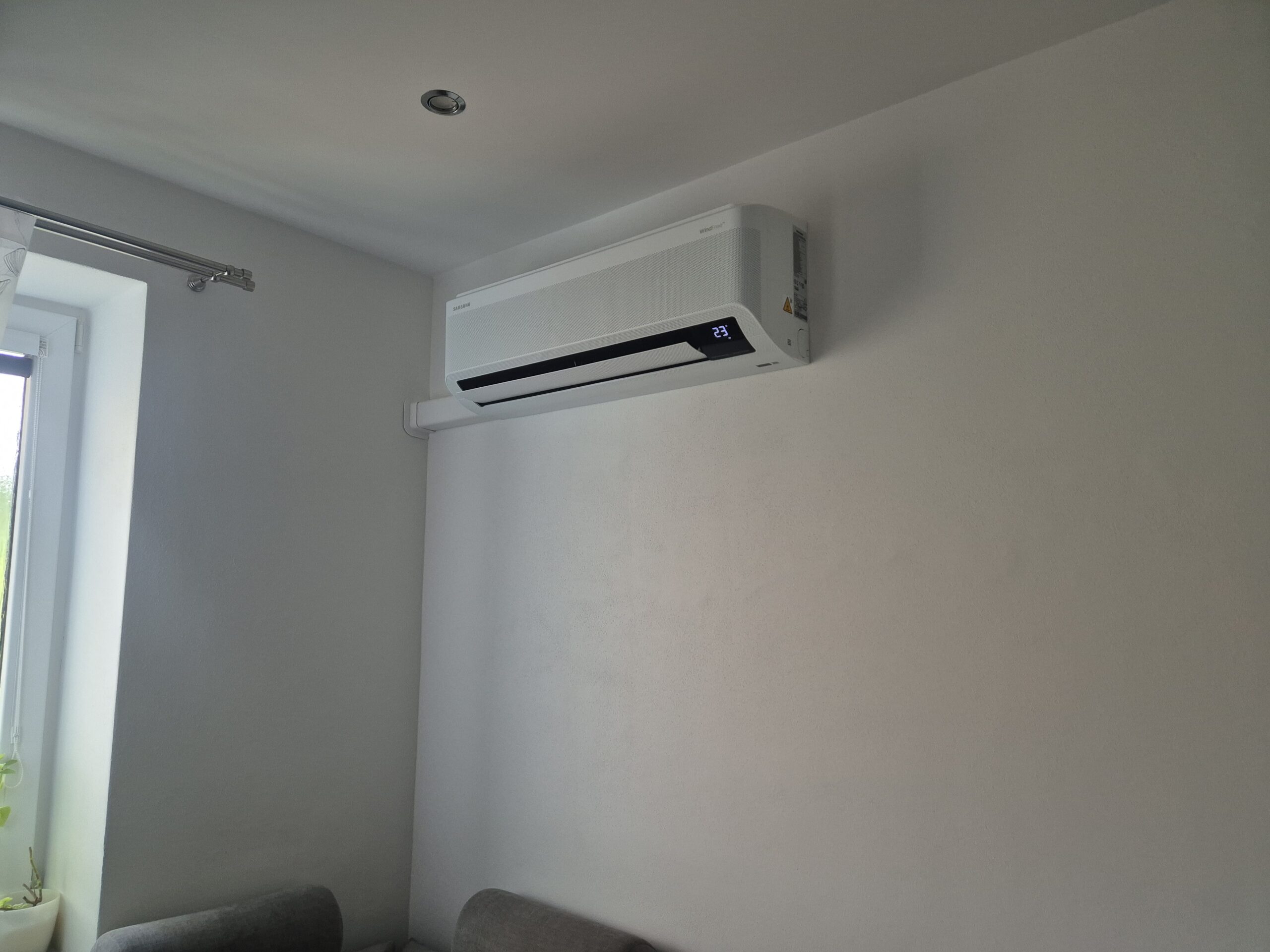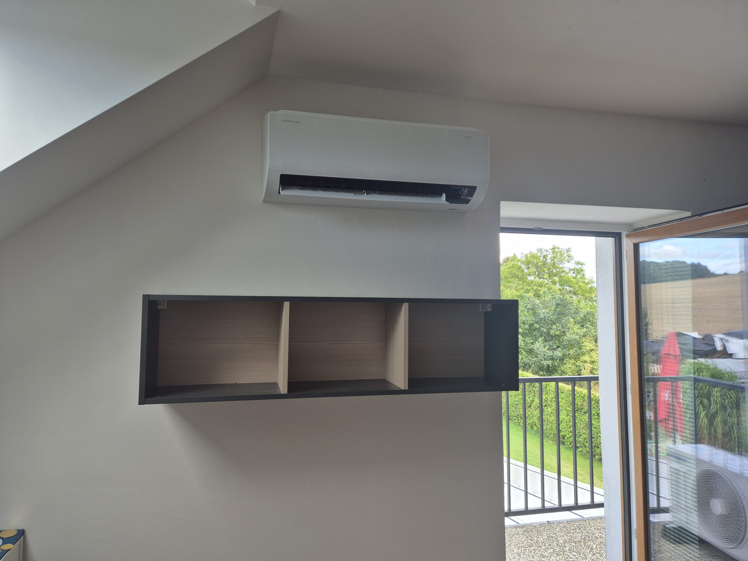Kombinace dvou klimatizačních systémů Samsung – samostatná Split klimatizace Avant byla instalována v obývacím pokoji. Druhý systém byl řešen jako MultiSplit, kdy jedna venkovní jednotka umístěná na balkoně a dvě vnitřní jednotky v dětském pokoji a v ložnici. Rozvody z ložnice byly vedeny na půdě, odkud pokračují k venkovní jednotce. Toto řešení umožnilo skrýt potrubní trasy, minimalizovat zásahy do interiéru Veškeré vedení bylo pečlivě provedeno s důrazem na funkčnost, estetiku i budoucí servisní přístup. Venkovní jednotky byly umístěny tak, aby nerušily provozem ani hlučností a zároveň měly zajištěné optimální podmínky pro správnou funkci.