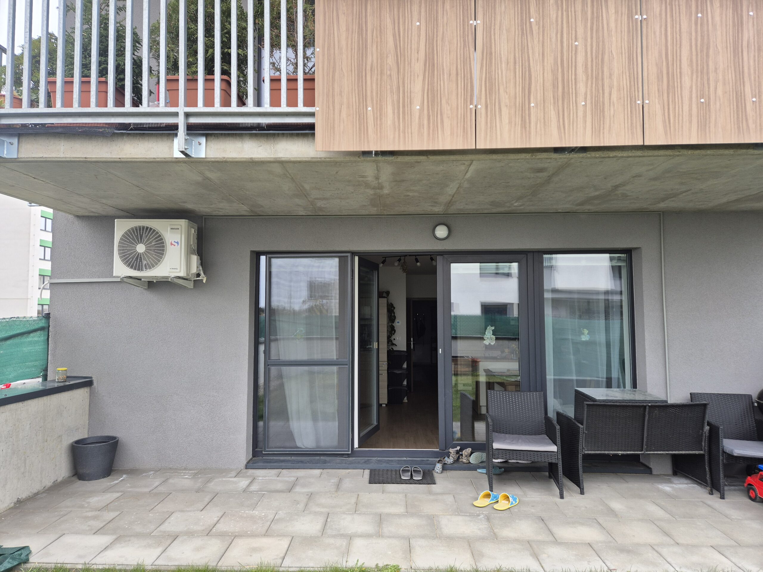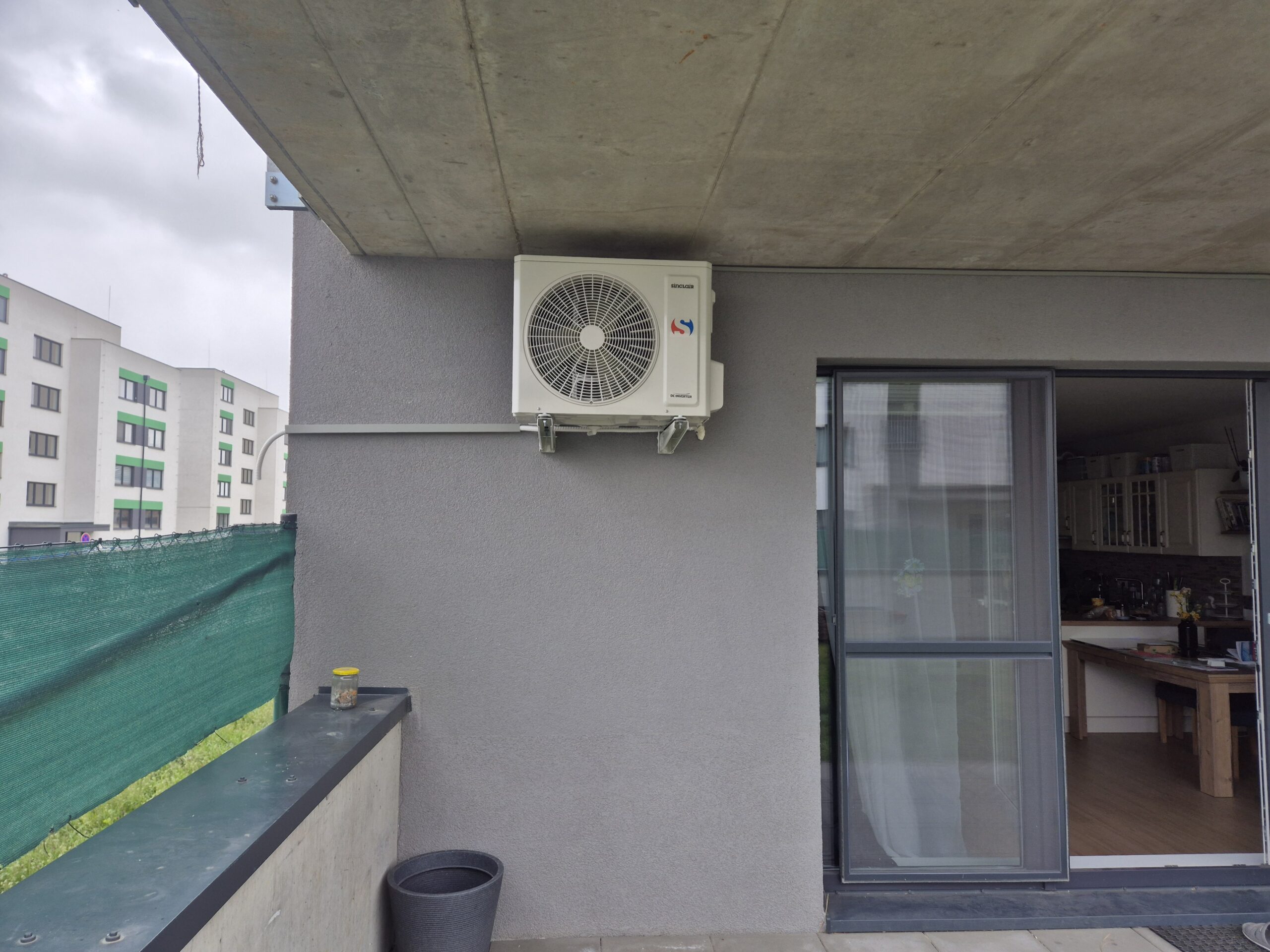 Vnitřní jednotka Sinclair Marvin byla umístěna v obývacím pokoji s kuchyní a venkovní jednotka byla osazena na balkoně bytu. Napájení klimatizace bylo provedeno v instalační liště v barvě fasády, díky čemuž je elektroinstalace nenápadná a esteticky sladěná s okolním prostředím.