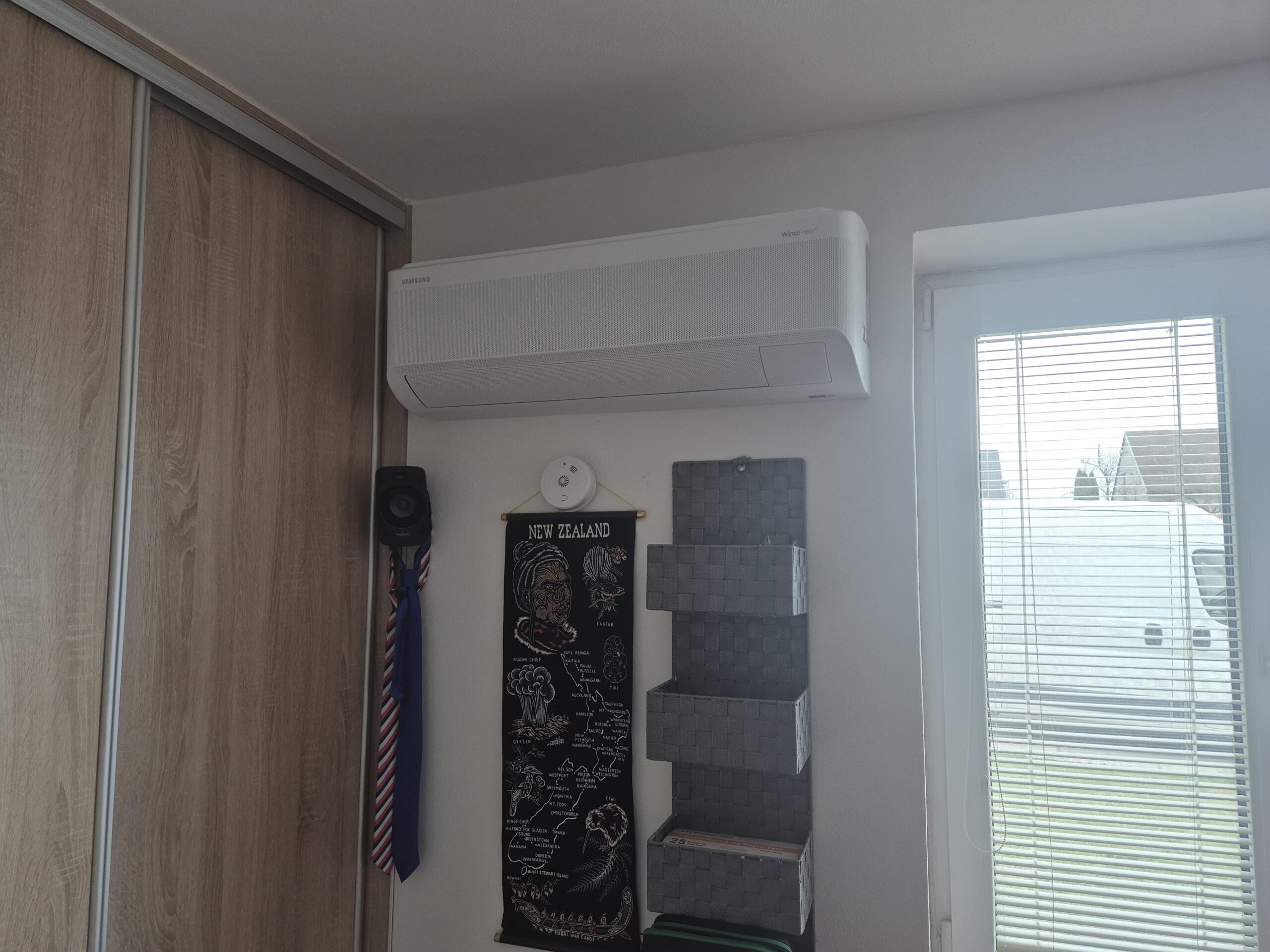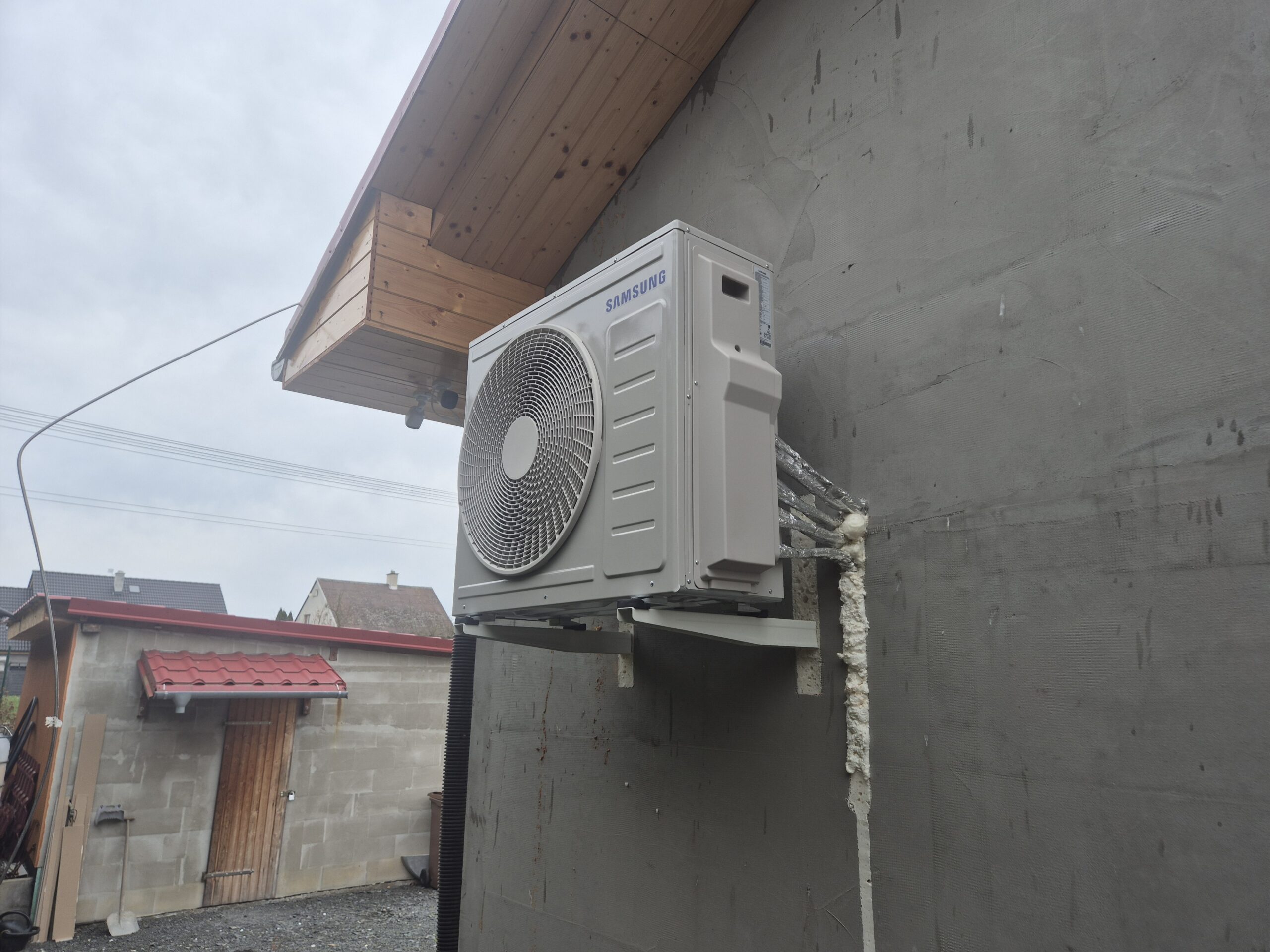 Chladivové potrubí, elektroinstalace i komunikace mezi jednotkami byly vedeny v půdním prostoru, což umožnilo zcela čisté řešení interiéru bez viditelných lišt. Tento způsob vedení je ideální zejména u rodinných domů se snadno přístupnou půdou. Odvod kondenzátu byl připraven a veden v rámci zateplení obvodové stěny ještě před dokončením fasády. Díky tomu je kondenzátní potrubí zcela skryté a fasáda zůstává nerušená bez dodatečných zásahů.
