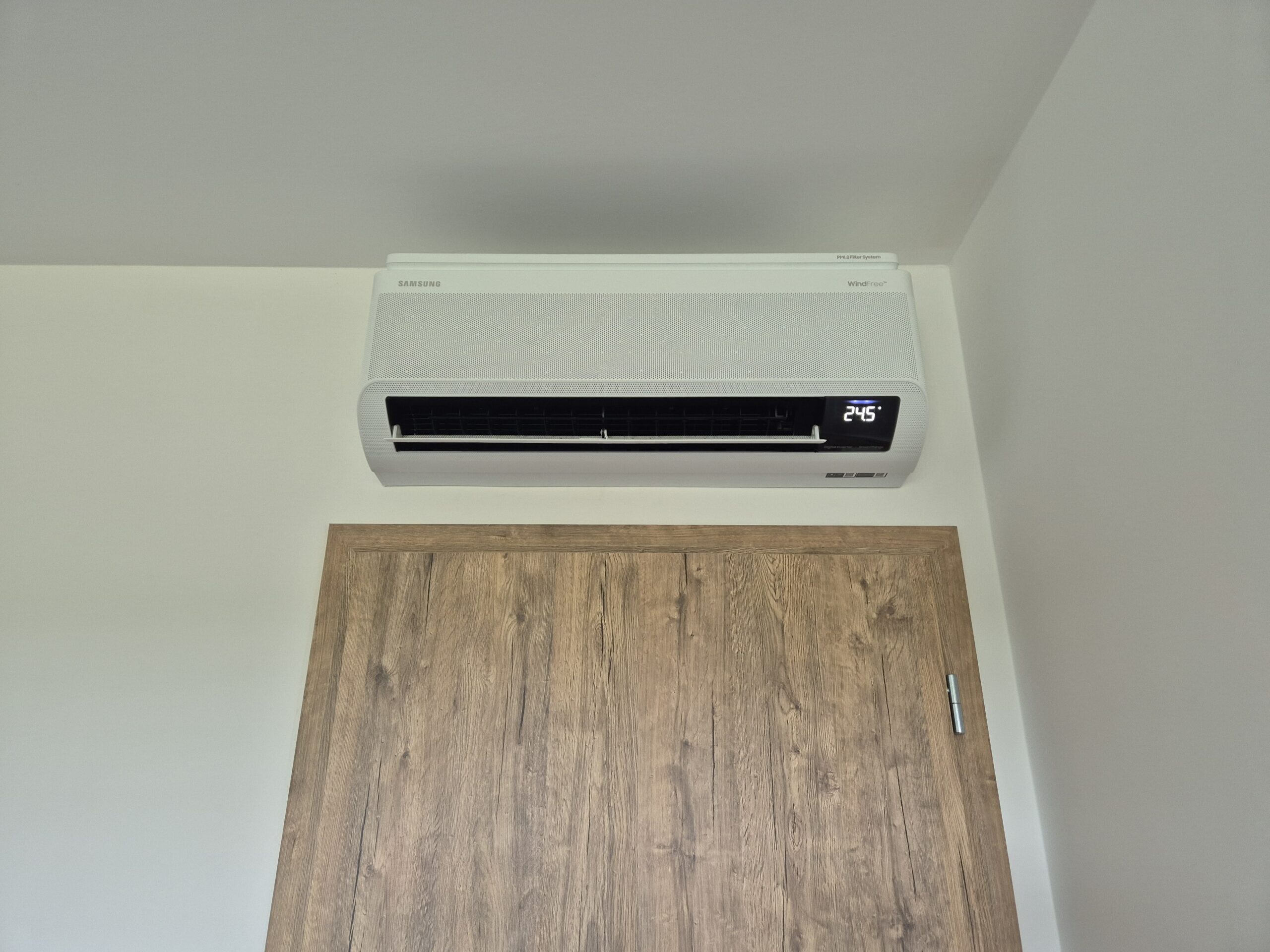 V bytovém domě na okraji Olomouce jsme realizovali montáž klimatizace Samsung WindFree Pure 1,0 o výkonu 2,5 kW. Velkou výhodou této zakázky byla již připravená trasa rozvodů, která byla provedena během hrubé stavby objektu. Díky této přípravě bylo možné provést samotnou montáž velmi efektivně. Po příjezdu na místo jsme během dvou hodin nainstalovali vnitřní a venkovní jednotku, provedli napojení na připravené rozvody, vakuování systému a kompletní zprovoznění zařízení. Celá realizace proběhla rychle, čistě a bez zbytečných stavebních zásahů, což bylo prioritou jak pro nás, tak pro investora. Po dokončení montáže byl zákazník seznámen s obsluhou klimatizace a jejím správným používáním.